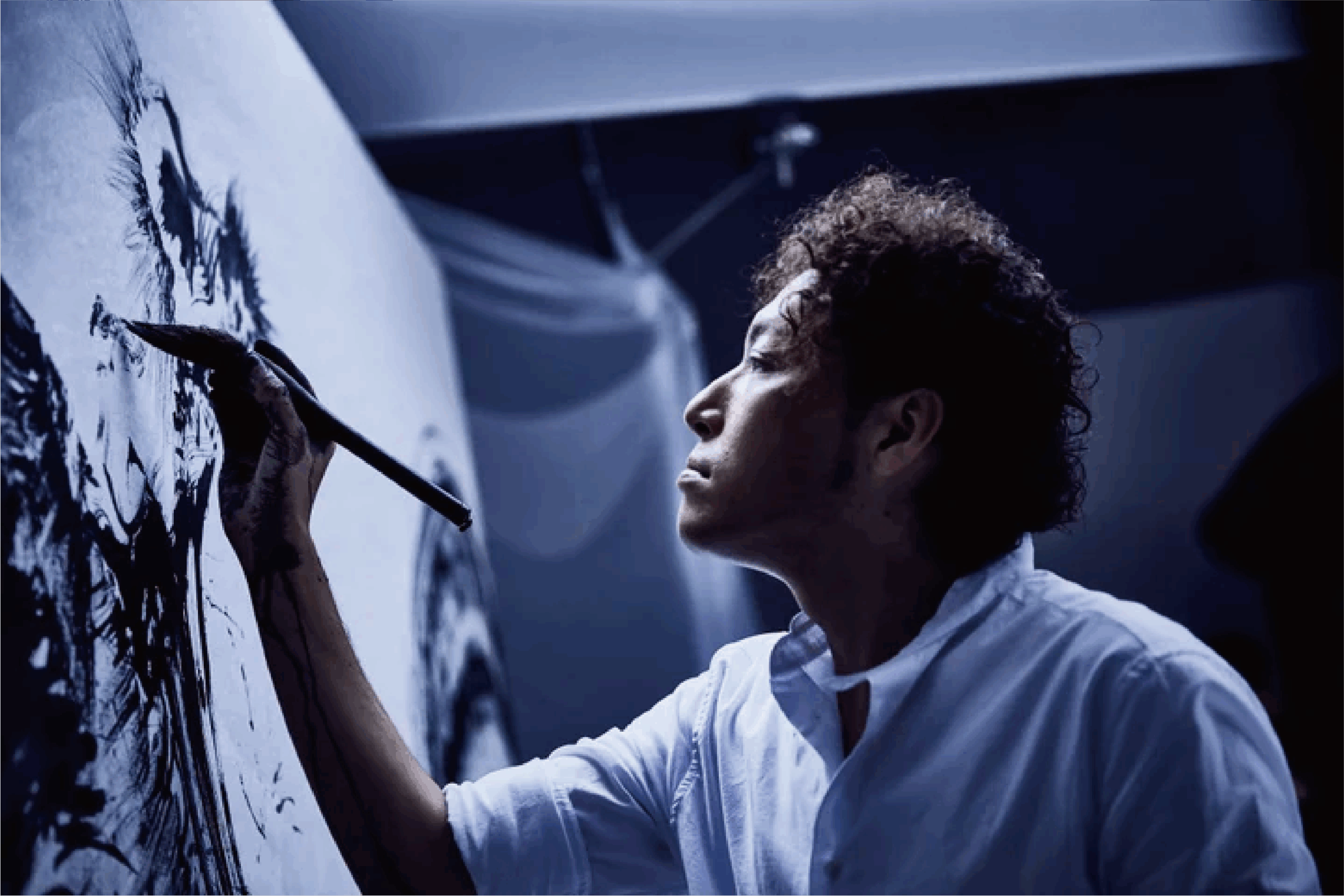 国際的なイベントやTV 番組では度々「ライブペイント」を披露しており、香港クリスティズオークションに招待され、LIVE で描いた墨絵が直後に落札されたことでアート界で一躍注目される。