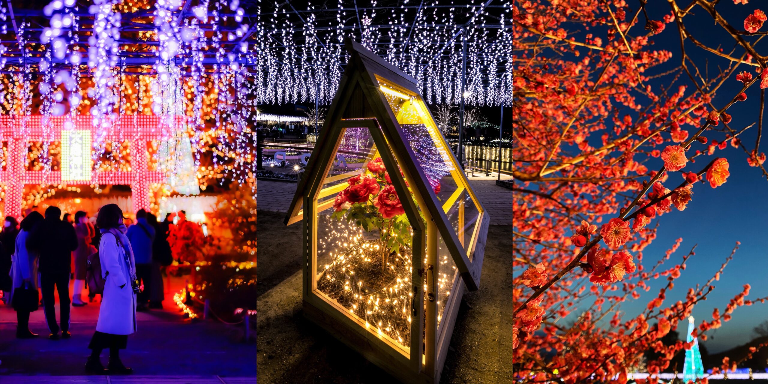 新年らしいイルミネーションの登場と、冬咲きボタンのライトアップが登場します。ロウバイや寒紅梅など新春のお花のライトアップもご覧いただけます。
