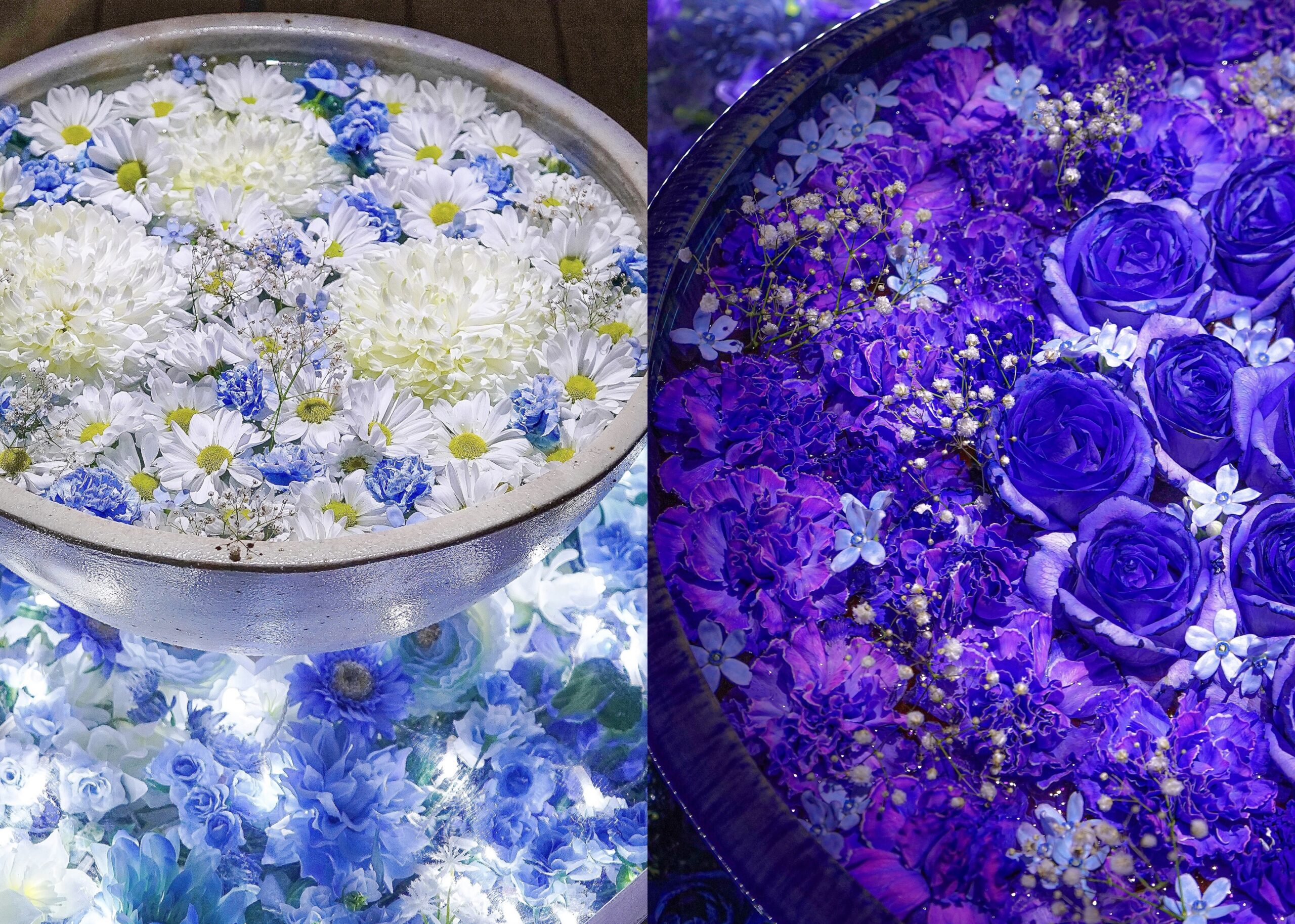 花を知り尽くした花のプロが創りあげる芸術作品。イルミネーション作品を花手水で表現しました。