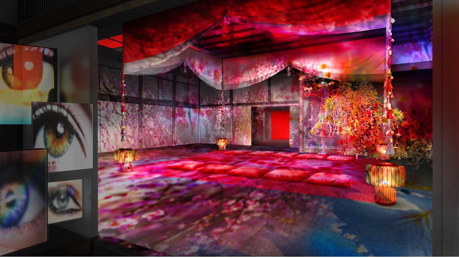 世界的に活躍するダンスカンパニーDAZZLEと、蜷川実花 with EiMのコラボレーションによる、物語に入り込むアート体験です。北野天満宮の風月殿を舞台に、蜷川実花 with EiMが手がける作品世界の中で、DAZZLEによるパフォーマンスが繰り広げられる“イマ―シブ公演”です。