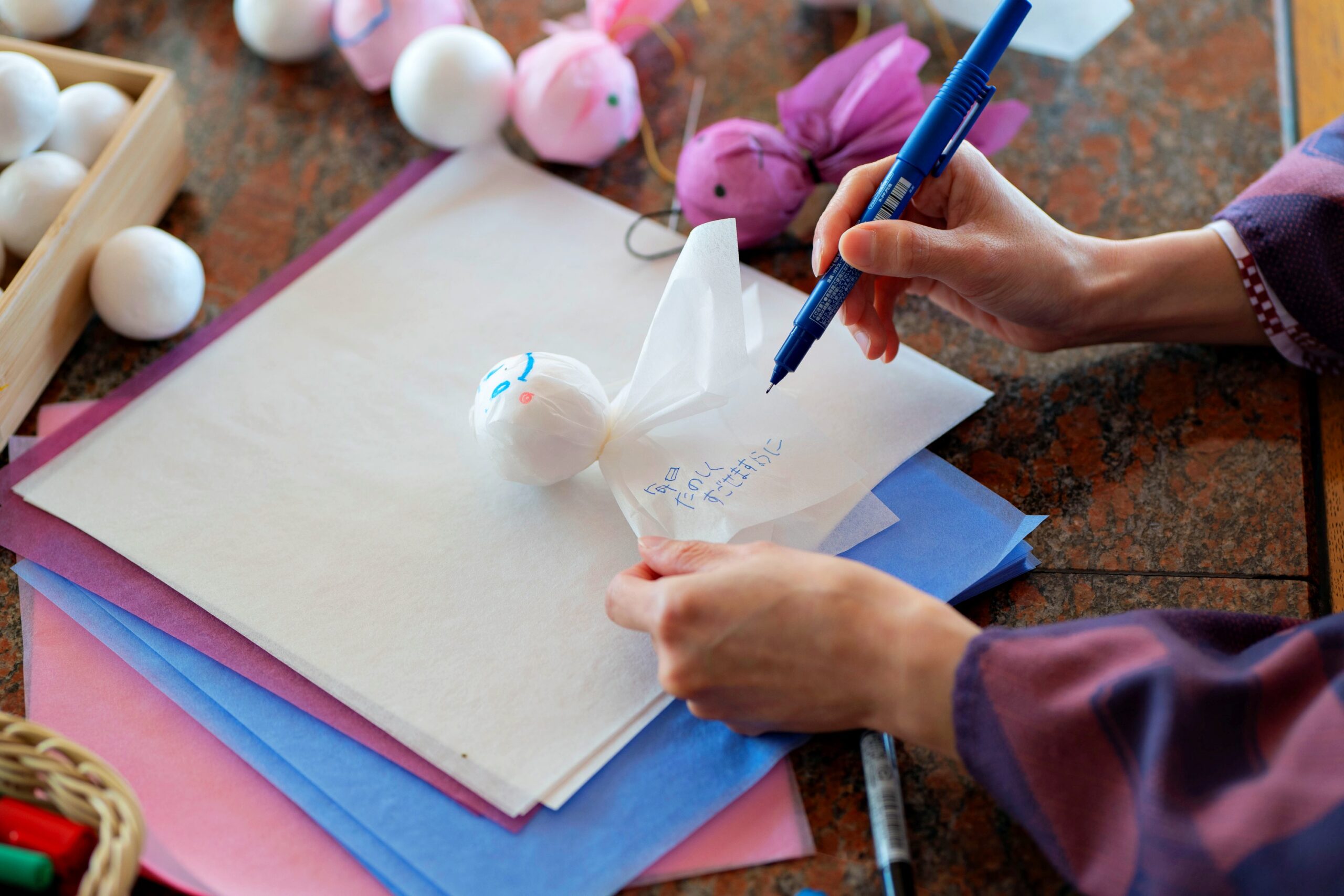 Teru teru teru bozu, on which you write your wishes for your loved ones or yourself, are hung in a special area in the museum. In addition to the standard white teru teru bozu, five other colours are available: red, blue, yellow and purple. Please choose the colour of your choice.