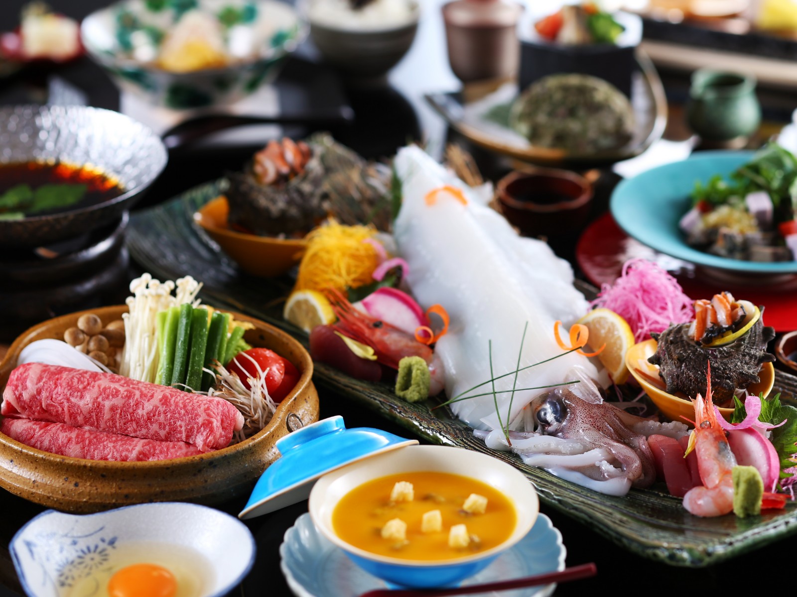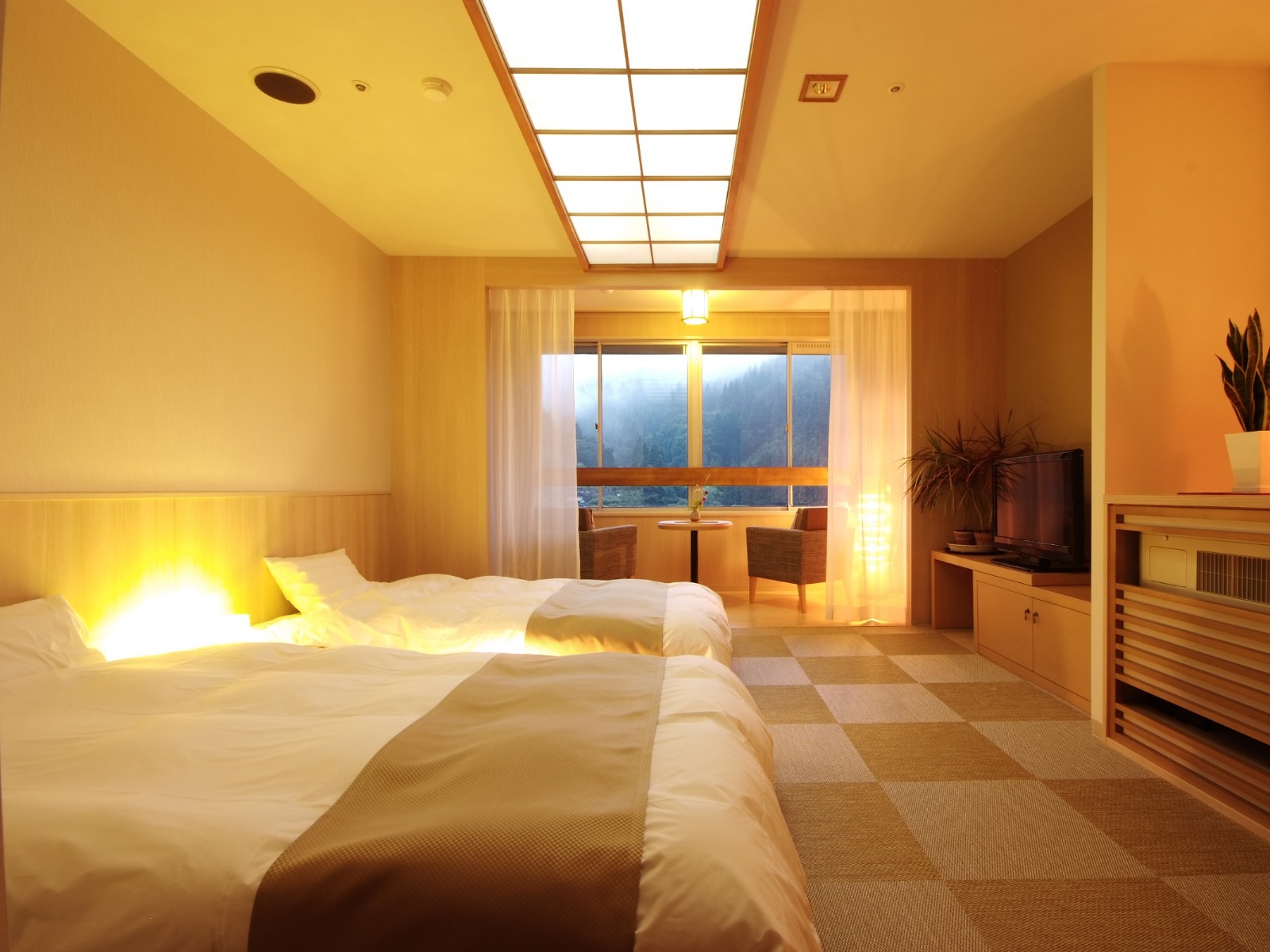 The hotel offers a wide variety of guest rooms, including guest rooms with a half-open-air hot spring bath, bed-type rooms such as the “Japanese modern twin” rooms where you can enjoy the hot spring in your room, and traditional Japanese-style rooms with futon bedding, allowing you to spend your time as you wish.