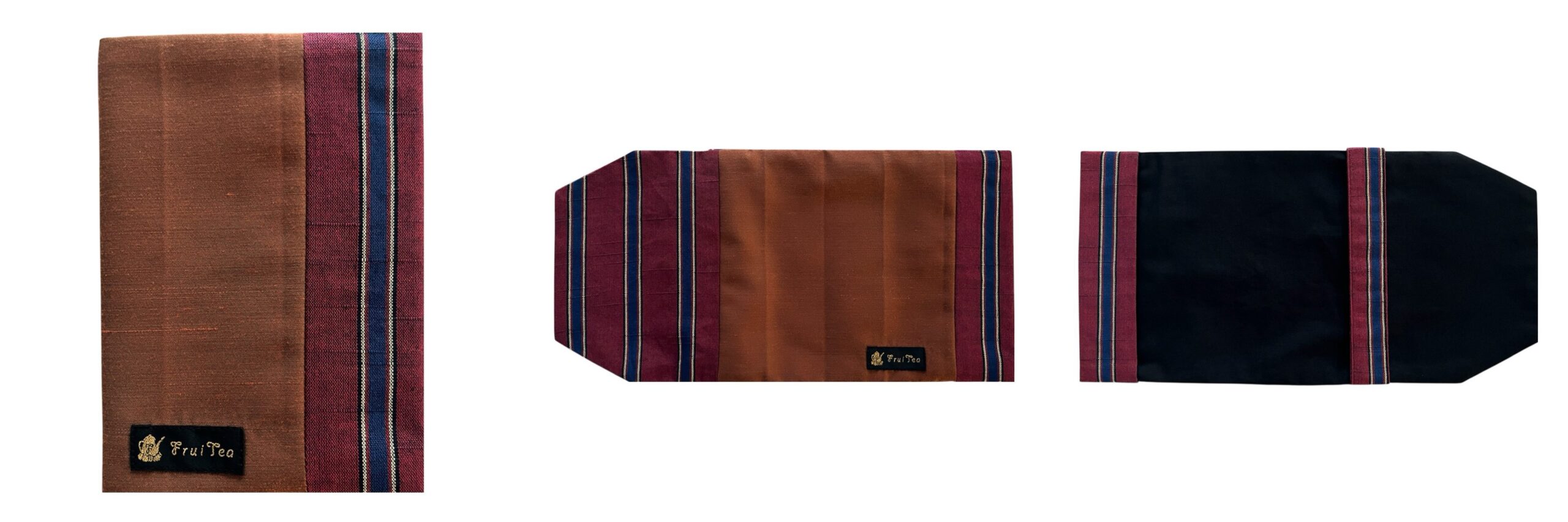 This product is sold as a set of four items: a pouch and station stamp book cover made by combining the curtains actually used at FruiTea Fukushima with Aizu cotton, a traditional craft of Fukushima, as well as a station stamp book and logo badge that can be used with these items. The pouch and station stamp book cover were produced using a combination of the Flutia Fukushima logo stamps. This is a special set of products that can only be found here, combining the memories of FruiTea Fukushima with local traditions.