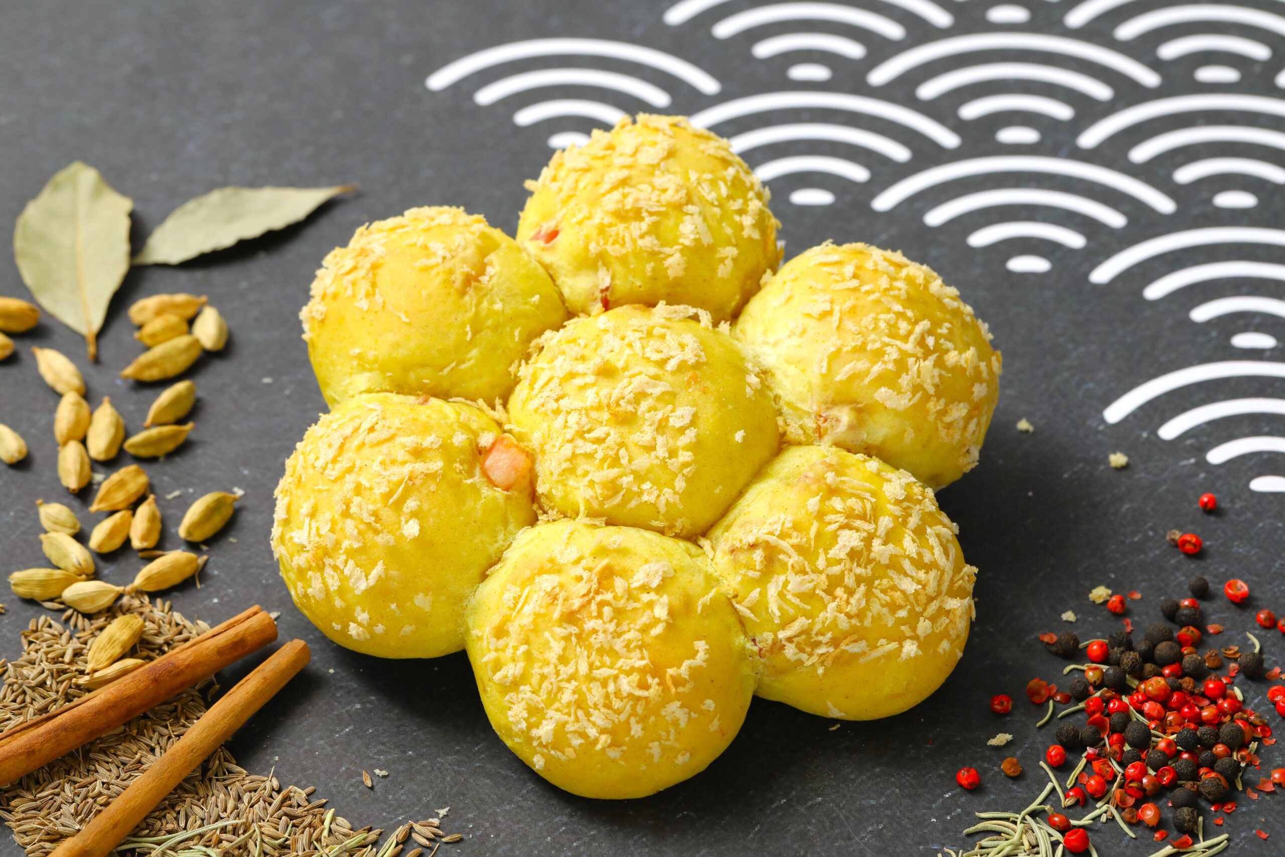 A summer-only flavour of the popular Kyo-Sei Chigiripan, which has sold more than 680,000 units*2 in total. The chunky texture of the dough is kneaded with dashi curry powder with concentrated flavour and spice, and the surface is covered with curry-flavoured breadcrumbs and baked to a golden brown.