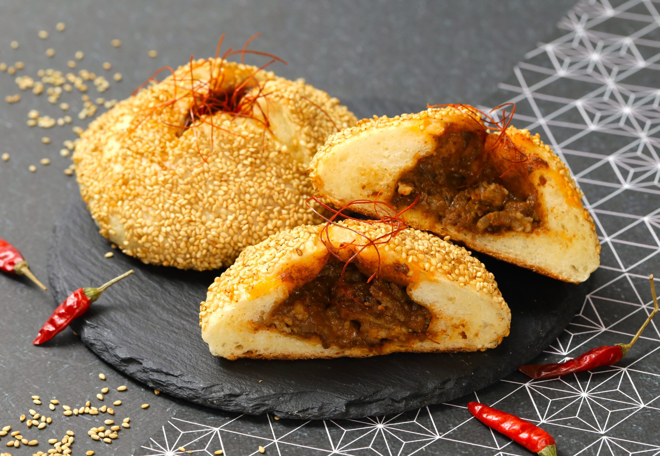 Slightly sweet bagel dough made from domestic wheat wraps char-grilled beef ribs and keema curry, and is baked with white sesame seeds on the surface. The deep-flavoured keema curry and the flavour of the beef ribs with just the right amount of fat will whet your appetite.