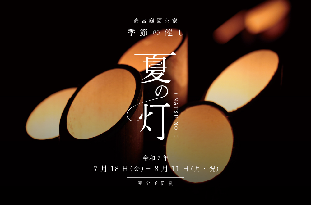 高宮庭園茶寮(たかみやていえんさりょう)」では、例年ご好評いただいております季節の催し「夏の灯(なつのひ)」を2025年7月18日(金)~8月11日(月・祝)の期間限定で今年も開催します。