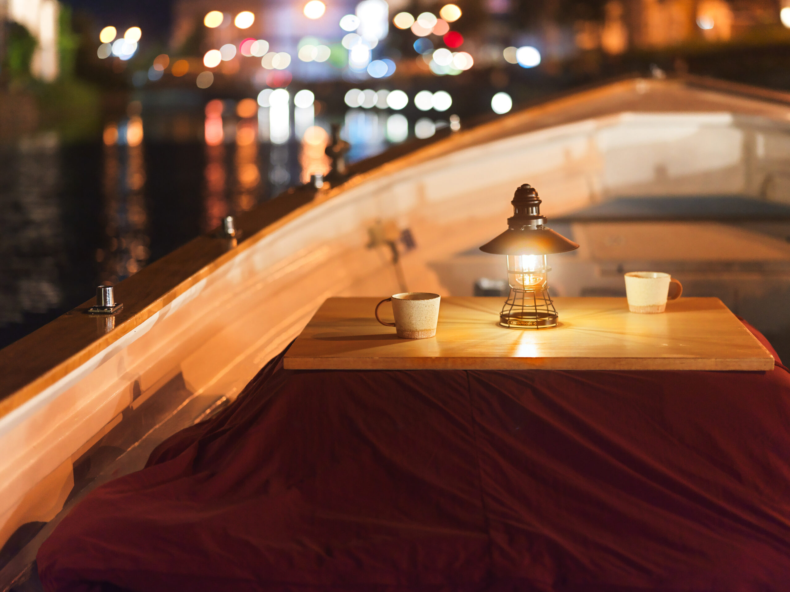 有別於通常採用長椅座位的運河巡航,本行程特別提供配備暖桌的專屬船隻。即使在嚴寒的小樽冬季,乘客也能在船上享受溫暖時光。船身更以暖色燈光點綴,約40分鐘的航程中,您可悠然欣賞被白雪覆蓋、歷史建築林立的小樽街景。