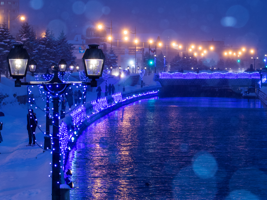 小樽運河是座異國情調洋溢的場所,沿岸林立著厚重木骨石造倉庫群等歷史建築。本行程將於日落後、煤氣燈照亮運河的時段舉行。積雪覆蓋的歷史建築與煤氣燈溫煦燈光交織而成的景致,正是冬季獨有的夢幻之美。